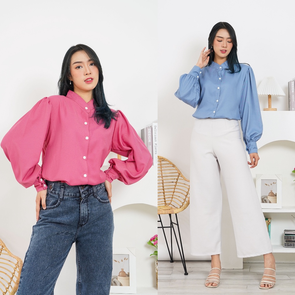 Produk Chamele - Peggy Ko moon Young kemeja wanita kerah Shanghai Puff sleeves tangan balon 2338 ini harganya adalah Rp. 99.000,00 dan saat ini sedang Diskon , Produk ini sudah dilihat sebanyak kali dan sudah disukai sebanyak 2270 kali.